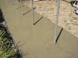 | 午後一番に生コン到着 | 徐々に平らにしていきます | 平らに平らに |